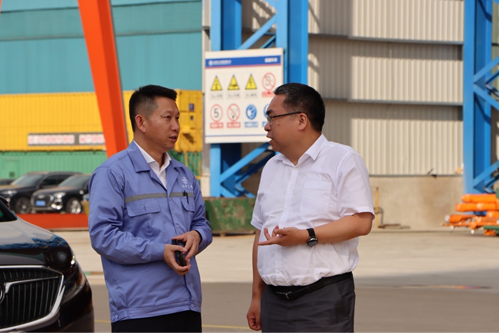 6月26日下午,太倉(cāng)市委常委、太倉(cāng)港經(jīng)濟(jì)技術(shù)開(kāi)發(fā)區(qū)黨工委副書(shū)記、管委會(huì)副主任戚振宇調(diào)研揚(yáng)子三井,集團(tuán)副總經(jīng)理、揚(yáng)子三井總經(jīng)理宋書(shū)明介紹了當(dāng)前新船型研發(fā)、手持船型訂單、首制4萬(wàn)立方LPG清潔能源運(yùn)輸船建造進(jìn)度、技改提效內(nèi)部挖潛及未來(lái)3~5年企業(yè)發(fā)展規(guī)劃和前景等生產(chǎn)經(jīng)營(yíng)情況。