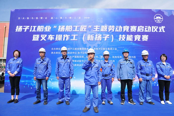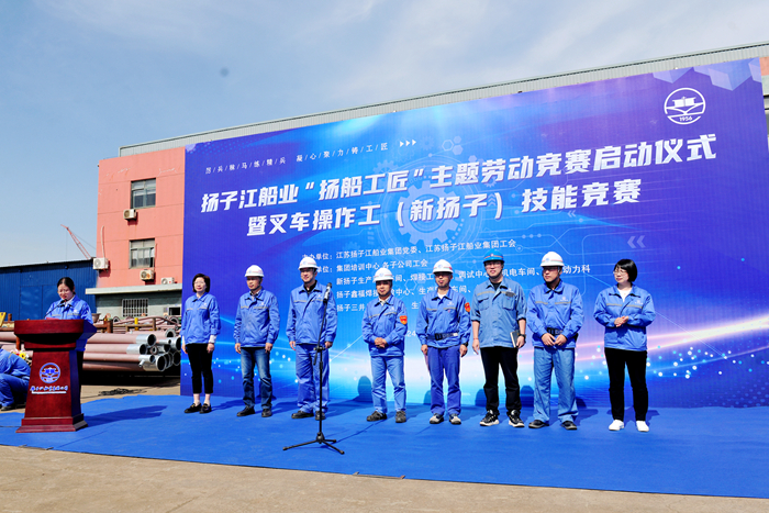 4月24日,揚(yáng)子江船業(yè)“揚(yáng)船工匠”主題勞動(dòng)競(jìng)賽啟動(dòng)儀式暨叉車操作工(新?lián)P子)技能競(jìng)賽在新?lián)P子造船舉行。集團(tuán)副總經(jīng)理兼新?lián)P子造船總經(jīng)理杜成忠,新?lián)P子造船副總經(jīng)理倪榮,新?lián)P子造船總經(jīng)理助理茆宏兆,揚(yáng)子鑫福造船總經(jīng)理助理劉銀君,集團(tuán)技術(shù)中心技術(shù)部部長(zhǎng)蔣才平,新?lián)P子質(zhì)量管理部部長(zhǎng)唐松,揚(yáng)子鑫福造船工會(huì)主席陳紅,揚(yáng)子三井造船工會(huì)主席司凌鈺,以及各造船子公司相關(guān)承辦車間部門領(lǐng)導(dǎo)、參賽職工代表和裁判員代表等參加啟動(dòng)儀式。
