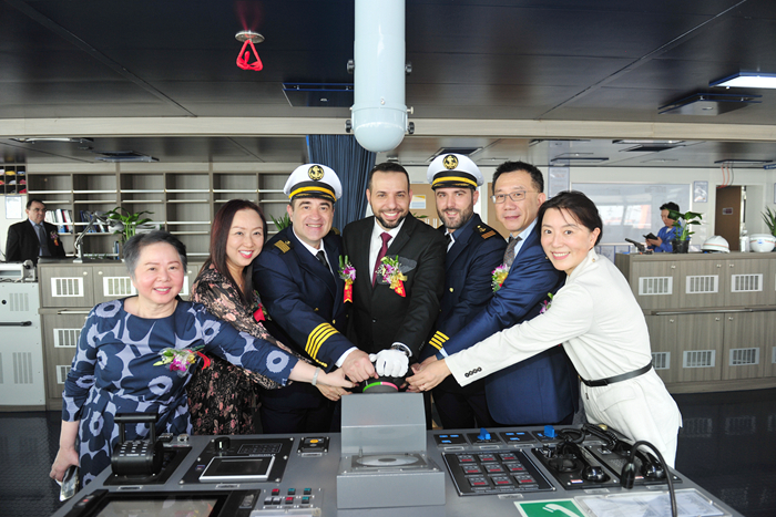 命名人Ana Ang女士、Sally Cheung女士、Cindy Li 女士,SEASPAN首席商務官李堃先生,ZIM亞洲區(qū)副總裁Metanes Abdallah先生,挪威船級社(DNV)高級副總裁黃今先生,中國船舶及海洋工程設(shè)計研究院(MARIC)副所長朱建璋先生,法國巴黎銀行出口信貸助理副總裁江琛女士,中國出口信用保險公司江蘇分公司項目險業(yè)務處副處長馬振先生,我集團董事長任樂天先生,集團副總經(jīng)理兼新?lián)P子造船總經(jīng)理杜成忠先生、集團副總經(jīng)理周科偉先生,集團總經(jīng)理助理吉宏飛先生,以及船東監(jiān)造組、項目合作相關(guān)方等領(lǐng)導和嘉賓出席了儀式。