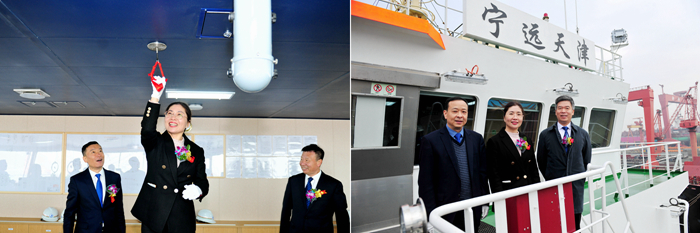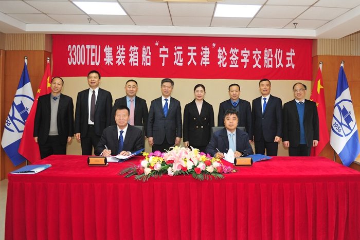 “寧遠天津”輪于2023年2月點火開工。在寧波遠洋、上海船舶設(shè)計院、雙希監(jiān)造組、CCS船級社以及船廠上下員工等各方的通力合作和相互成就下,歷時10個月建成交付。命名當天,在各方嘉賓的共同見證下,寧波遠洋黨委委員、副總經(jīng)理陳加挺先生與我集團副總經(jīng)理兼新?lián)P子造船總經(jīng)理杜成忠先生分別代表雙方簽署交船文件。