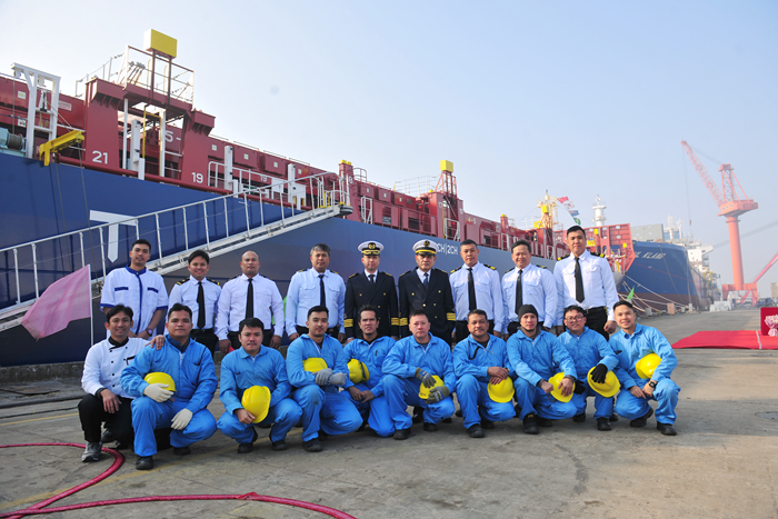 1月14日,我集團新?lián)P子造船(揚子長博廠區(qū))為希臘船東COSMOSHIP公司建成交付的一艘1800TEU集裝箱船——“KALLIROE C”輪,從船廠碼頭解纜啟航,投入船隊運營。