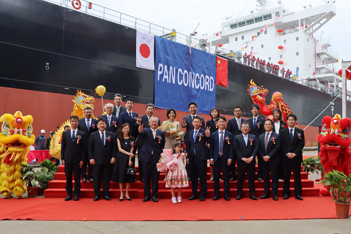 教父Jung Sangjin先生將新船命名為“PAN CONCORD ”輪,并祝愿她及隨船船員航行平安,Sponsor橘侑花小姐為新船擲香檳。鞭炮、禮花齊響,汽笛共鳴,龍獅共舞,祝福新船一切順利,為建造方帶來(lái)榮譽(yù),為船東帶來(lái)好運(yùn)與財(cái)富。大河內(nèi)啓介先生表示對(duì)新船十分滿意,并期待能與揚(yáng)子三井再次合作。新船姊妹船也將于今年交付,揚(yáng)子三井將在本船經(jīng)驗(yàn)上繼續(xù)努力,交出讓船東滿意的綠色高質(zhì)量船舶。