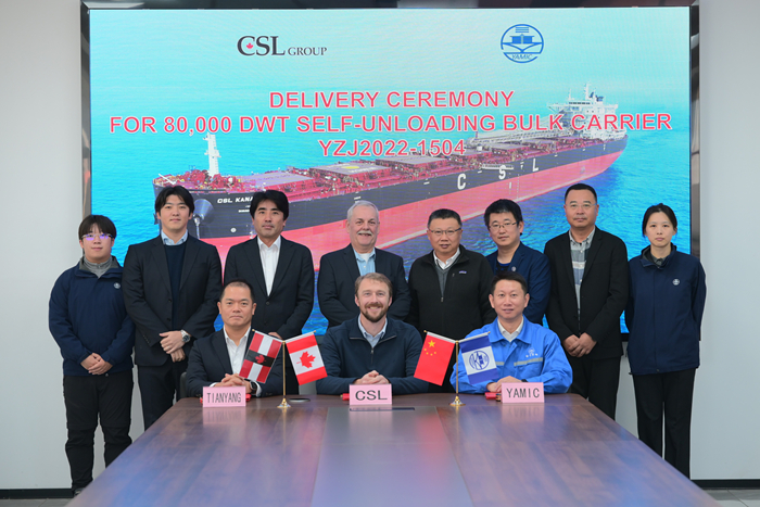 12月18日,船東代表Andrew Lennox先生、我集團(tuán)副總經(jīng)理兼揚子三井總經(jīng)理宋書明先生及揚子三井CFO石丸雄次先生共同簽署“CSL KANATA”輪交船文件。祝愿新船航行平安、滿載順達(dá)、一帆風(fēng)順!